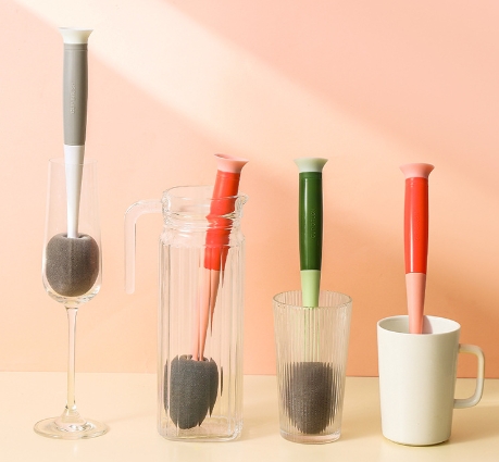 新款海绵杯刷长柄便携奶瓶刷可拆卸美妆蛋清洁刷多功能三合一杯刷